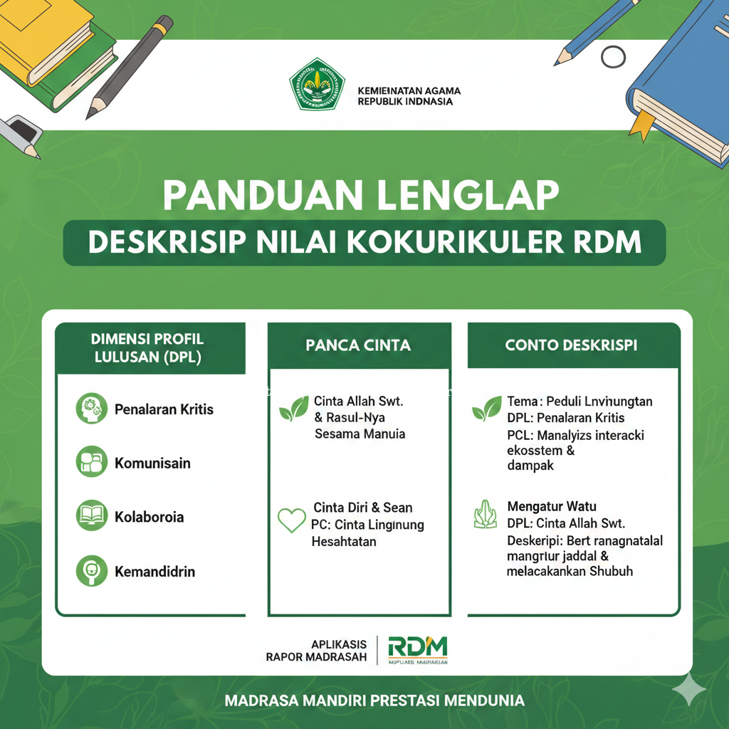 Pertanyaan mengenai format penulisan deskripsi nilai kokurikuler di Rapor Digital Madrasah (RDM) sering muncul di kalangan guru, . . . 0